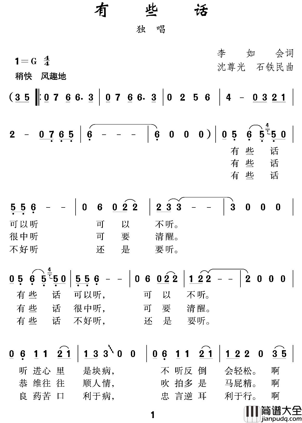 有些话简谱_李如会词/沈尊光石铁民曲